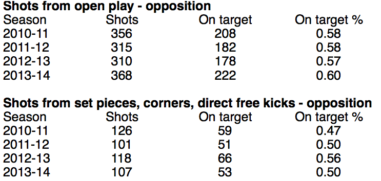 What about the opposition? Well, their shooting against Liverpool was neither especially good nor bad in 2013-14: