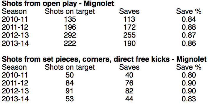 (Note that these are all saves, including blocked shots; I’m only using quick-and-dirty statistics here, after all.)